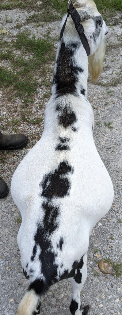 WJM Happy Hollow Moon 2*P FF udder dam: Two Girls Blue Moon (GoGo’s Lil Blanche a GoGo’s Little Caesar x EarKnot Acres Shasta daughter x Nehi Minis Dun-Vel Exodus)