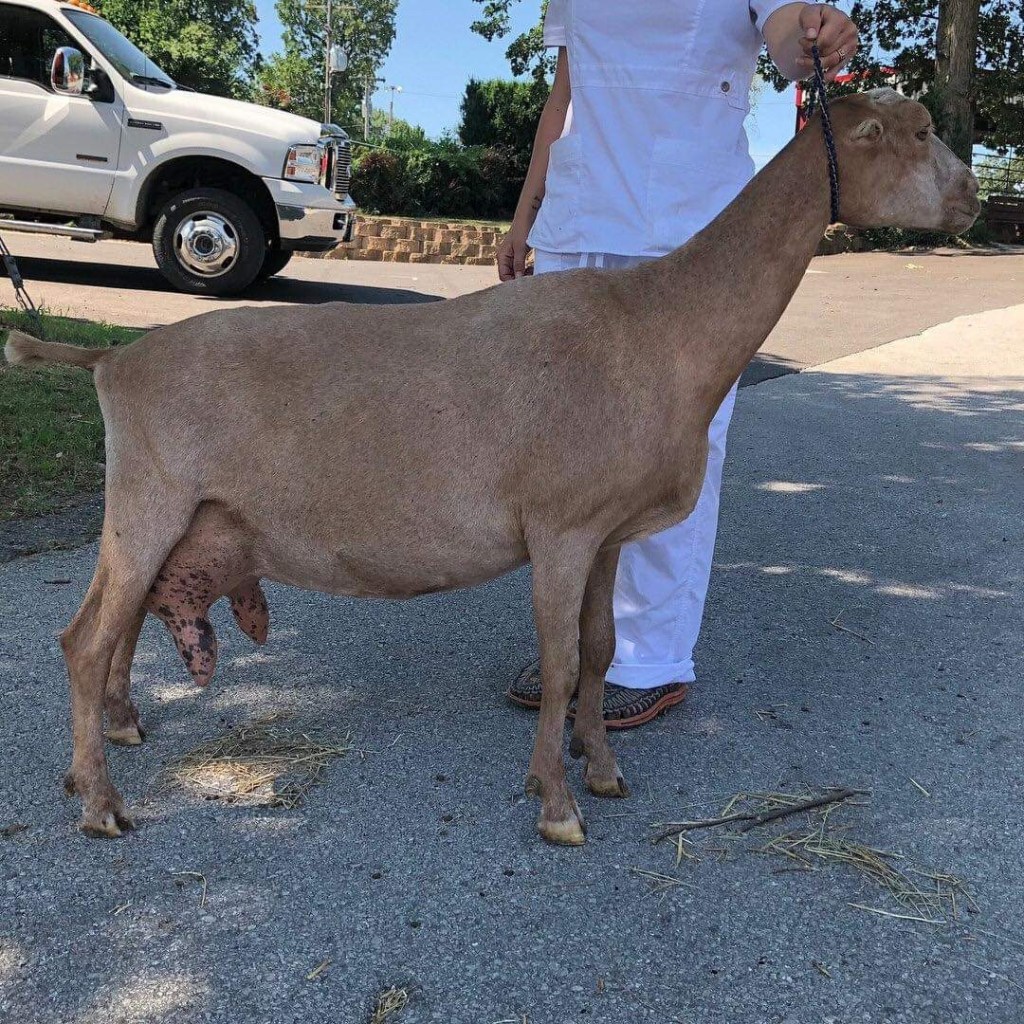 Two Girls Ladybug FF udder owner Hope Brown of Two Girls Farm, Snow Hill NC. Photo provided by Hope Brown.